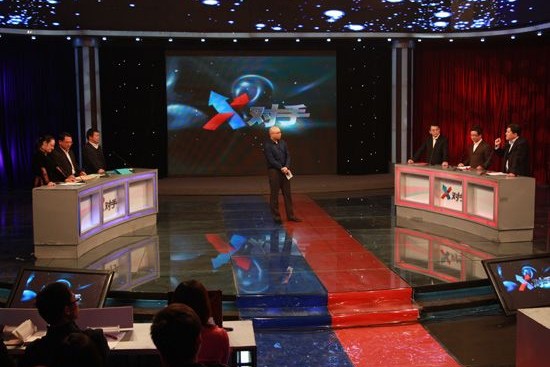 节目录制现场全景 红方阵营由北京佳美医院管理有限公司董事长刘佳、人力资源与社会保障部社会保障研究所医保研究室副主任董朝晖以及《财经》杂志记者杨中旭组成。他们认为,解决看病难的问题关键在于充分发挥市场的力量,单靠国家的单方面投入远远满足不了医疗资源短缺和配置不合理问题,民营资本以前的发展受到过多的政策制约,他们得到的是与公立医院不平等的地待遇,但经过多年的大浪淘少,目前坚持下来的医院大多数是有实力的,规范的医院。如果给他们适当的鼓励,他们会做得比公立医院更好,让看病更放心,更容易,也更便宜。